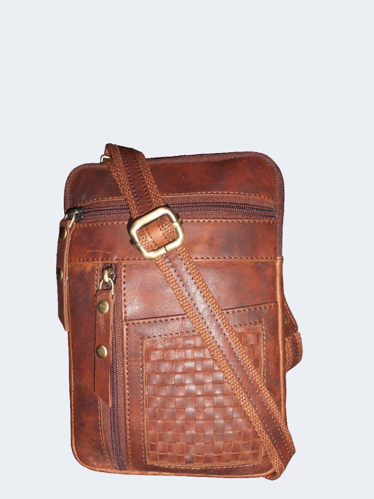 Elevate your daily carry with our Artisan Woven Leather Crossbody Bag. Crafted from premium top-grain leather, this bag showcases a beautiful cognac-brown patina that develops character over time.