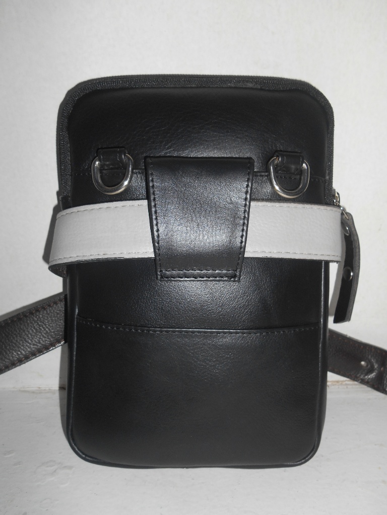 The back features a sturdy integrated belt loop and dual D-rings, allowing you to switch seamlessly between a secure waist attachment and a traditional shoulder bag setup. The standout feature is the horizontal grey contrast strap, which adds a structural pop of color and reinforced stability. With a secure wrap-around zipper and a slim exterior slip pocket, it provides quick access to your cards, phone, and keys while maintaining a low-profile silhouette.