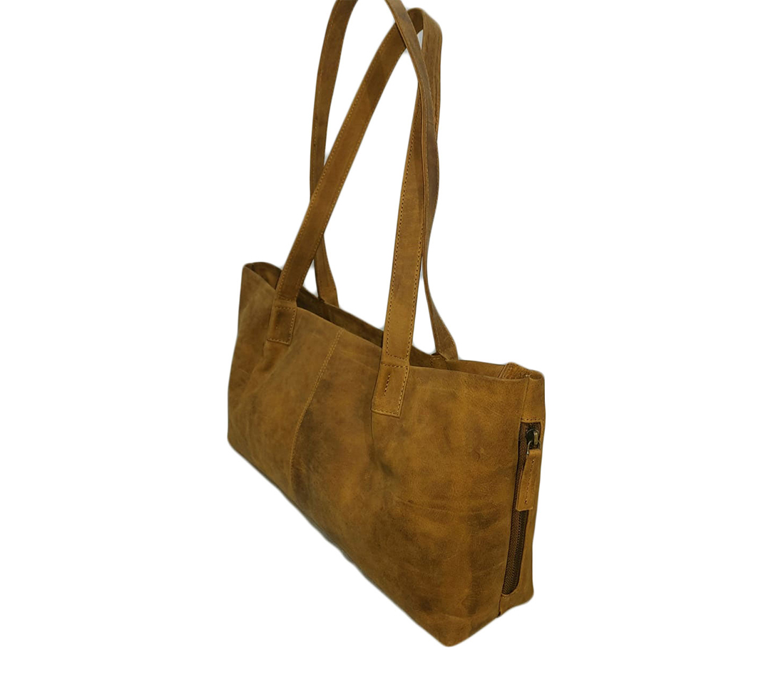 he long, sturdy shoulder straps ensure comfortable all-day carrying, while the secure top zipper closure keeps your belongings safe. A side zip pocket adds convenient access to frequently used items. Durable stitching and natural leather texture enhance its timeless, rugged appeal.