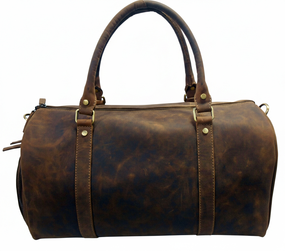 Travel in timeless style with the FR DSCN0060 Vintage Leather Duffle Bag, crafted from premium distressed genuine leather in a rich rustic brown finish. Designed for durability and character, the leather develops a unique patina over time.